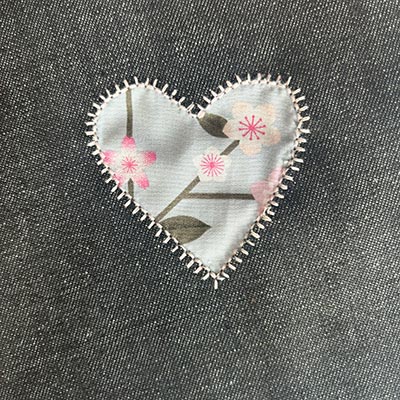 Vous souhaitez un renfort plus design pour votre vêtement ? C’est possible avec la couture d’un appliqué. Vous choisissez la forme et le point de couture.