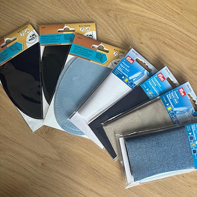 Il existe de nombreux types de textiles sous forme d'ovales pour les genoux ou les coudes, ou sous forme d'échantillons. Ces renforts sont thermocollants et se fixent donc au fer, sans vapeur. Vous trouverez du jean, dans divers coloris, du coton, du polyester, du imitation daim, du nylon…