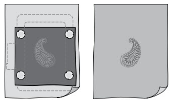 Lors de la broderie avec les aiguilles à feutrer, aucun fils ne sont utilisés. Le tissu est encerclé avec le côté droit vers le bas.
