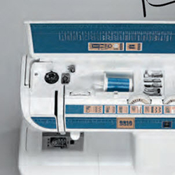 Le bras libre est indispensable pour les coutures tubulaires et l’enfile aiguille est idéal pour se mettre au travail rapidement.