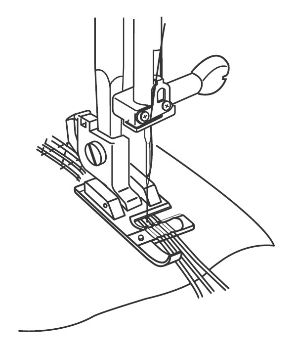 Pour border ou piquer des cordonnets, des ganses ou des bordures pour embellir vos vêtements; cadeaux et ouvrages artisanaux. Point zigzag, longueur de point 1,5, largeur aussi large que la bordure ou la cordelette. Mettre le pied ganseur.