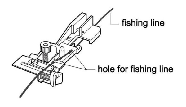 1) Desserez la vis du guide et réglez le à la largeur de votre élastique, fil de pêche (Réglable de 2 à 20 mm). Si vous utilisez du fil de pêche, utilisez le trou prévu à cet effet