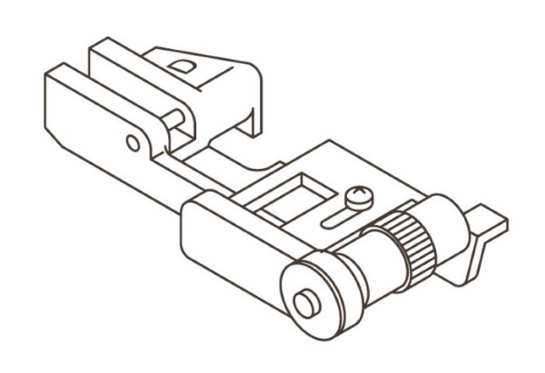 Ce pied permet la réalisation de poignets sur les tissus tissés et d’ourlets avec une couture invisible.