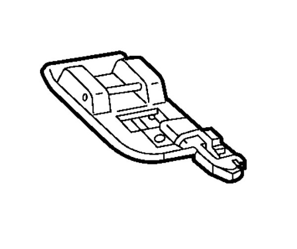 Le pied s’utilise pour les points de surfilage piqués au bord pour éviter que le tissu s’étire ou se plisse. Le petit guide métallique situé sur le bord du pied empêche le bord du tissu de plisser. Consulter l’écran-info qui recommande le pied bordeur, overlock, surjet pour de nombreux points de surjet.