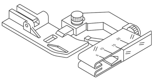 Ce pied réglable permet de poser des biais de largeurs différentes plus facilement. Pour tissus légers ou moyens.