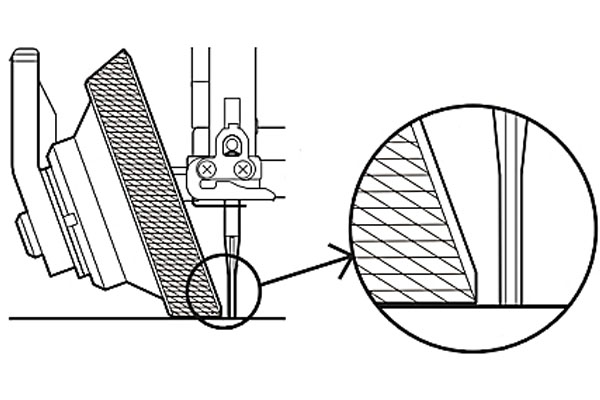 Pour d'excellents résultats de couture, placez le rouleau et l'aiguille l'un près de l'autre. Outre le rôle de maintien du tissu, cela a pour effet de maintenir la longueur du point aussi uniforme que possible.