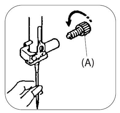 1. Éteignez l'interrupteur d'alimentation. Fixez la vis pointeau exclusif de serrage (A). Changez l'aiguille de taille 14.