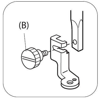 2. Fixez le pied de broderie sur la barre du pied presseur. Resserrez la vis (B).